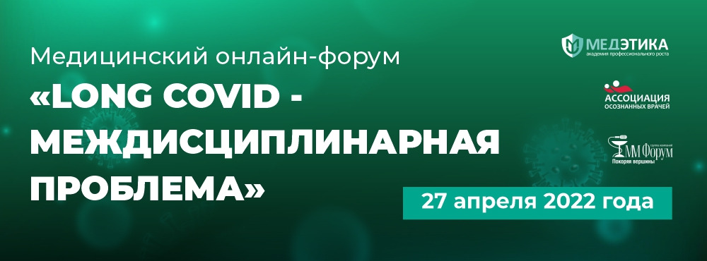 Приглашаем Вас принять участие в Медицинском форуме «Long Covid - междисциплинарная проблема», который пройдет в онлайн-формате, 27 апреля 2022 года, https://events.webinar.ru/MMForum/11131797.